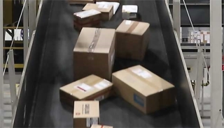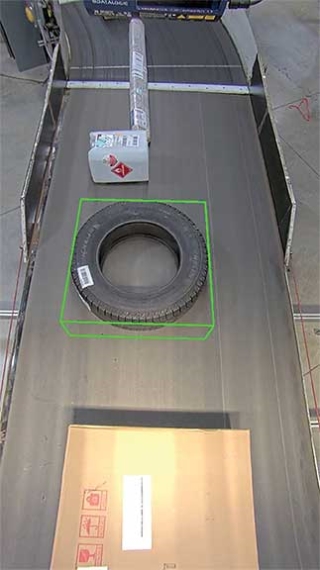 • AV900-Flächenkameras und eine IP-Farbkamera nehmen mehrere Ansichten von Artikeln auf, die über das Förderband laufen. Diese Bilder können für Videocodierungsaktivitäten verwendet werden und dienen als Nachweis für den Zustand der Objekte.