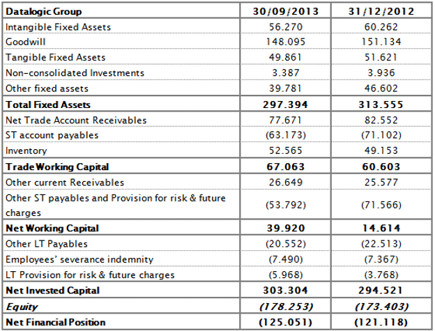The net financial position on 30th September 2013 was negative at 125.1 million Euro, compared to 121.1 million Euro at 31st December 2012.
