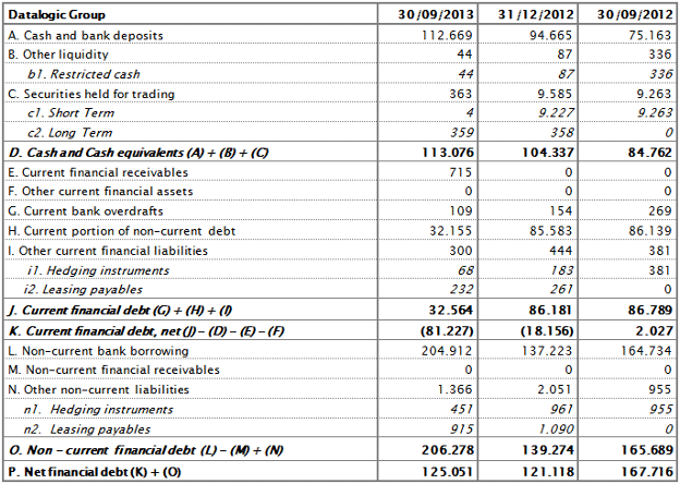 Net Financial Position at 30th September 2013 – Euro/1.000