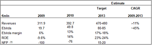 The 3 Year Plan for 2011-2013 is a rolling plan that confirms the growth drivers of the plan approved in October 2010 and extends the time horizon to 2013. The Plan is based on strengthening the Group’s competitiveness on its reference markets – Automatic Data Capture (ADC) and Industrial Automation (IA) – as well as growth in emerging countries and a substantial improvement in industrial efficiency and productivity. The main operating and financial targets to 2013 are summarised in the table below: