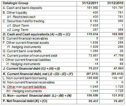 Net Financial Position at 31st December 2011 – Euro/1.000