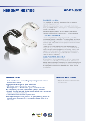 El nuevo lector Heron™ HD3100 linear imager aporta elegancia sin igual junto con la tecnología más avanzada para un punto de venta moderno. La elegante silueta del nuevo lector con múltiples luces que cambian de color, diseño moderno e innovador, junto con el altavoz, mejora la experiencia del cliente en el punto de venta. La Heron HD3100 se diferencia de la combinación de colores habitual del resto de los lectores manuales ofreciendo dos opciones de color, blanco y negro, destacando las líneas curvas de la nueva carcasa. Además, el lector le da la opción de elegir entre dos coberturas superiores, 'Fibra de Carbón' o 'Plata'. Este lector imager también le da la posibilidad de incorporar la imagen de marca de la compañía, permitiendo componer la imagen perfecta: combine el logotipo de su empresa con el color de la cubierta superior personalizando la luz y el audio con el fin de reforzar el valor de su marca en el punto de venta frente al cliente. La Heron imager ofrece un rendimiento avanzado. También incluye la tecnología 'Punto Verde para la confirmación de lectura correcta con una funcionalidad adicional: el 'Green Spot' se puede utilizar como puntero en operaciones en modo manos libres.