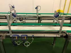 Las cajas llevan etiquetas colocadas en la cara frontal y trasera que son leídas por unos arcos de lectura de DATALOGIC instalados a lo largo de la cinta transportadora que las clasifican. Cada arco de lectura está equipado con dos escáneres láser Datalogic DS5100.