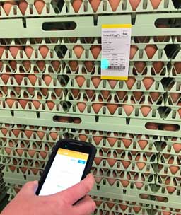La soluzione Ovotrack consiste in un database e diversi moduli software basati sulla scansione di codici a barre e sull'acquisizione dei dati, "On Farm Scanning" ne è un buon esempio. Le etichette contenenti tutte le informazioni necessarie come nome, indirizzo e numero di registrazione vengono applicate non appena le uova sono pronte su un pallet o un contenitore presso l'allevamento di pollame. Le etichette vengono scansionate dagli autisti durante il ritiro dei pallet presso le aziende agricole utilizzando uno scanner di codici a barre integrato. I conducenti quindi inseriscono la data di deposizione e forse il numero di secondi. Durante lo scarico presso il centro di imballaggio, il computer portatile può caricare le informazioni nel database tramite Wi-Fi in modo che l'inventario non classificato venga aggiornato automaticamente. Questo caricamento può essere eseguito anche da remoto se il PDA contiene una scheda SIM.