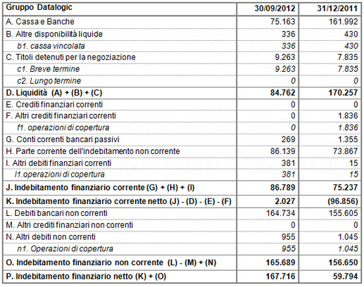 Posizione Finanziaria Netta al 30 settembre 2012 – Euro/1.000