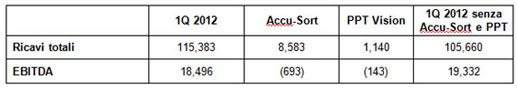 • Il primo trimestre 2012 conferma la crescita del Gruppo anche grazie al consolidamento di Accu-Sort Systems e PPT Vision