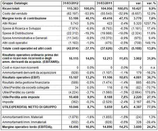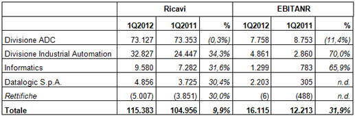 DATALOGIC (STAR: DAL.MI) - APPROVATO DAL CONSIGLIO DI AMMINISTRAZIONE IL RESOCONTO INTERMEDIO DI GESTIONE AL 31 MARZO 2012