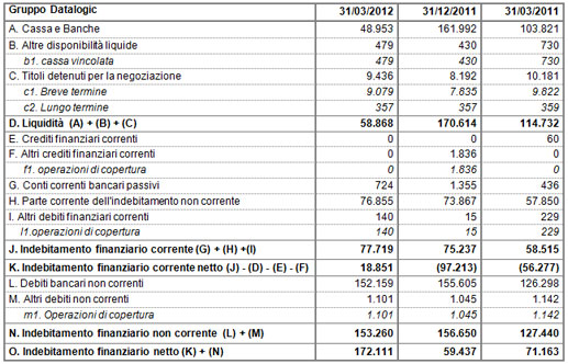 Posizione Finanziaria Netta al 31 Marzo 2012 – Euro/1.000