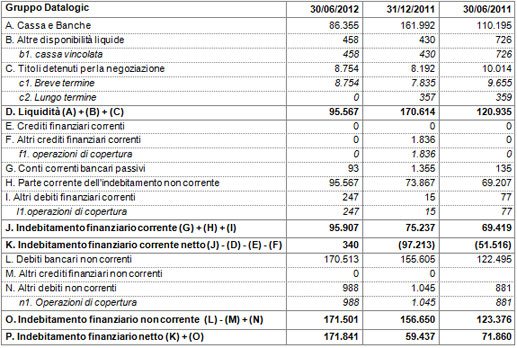 Posizione Finanziaria Netta al 30 giugno 2012 – Euro/1.000