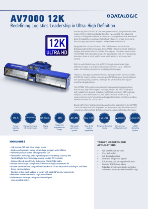 AV7000 12K は最も要求の厳しいマテリアルハンドリングのアプリケーションに対応するため、画素数を 50% 増やし、比類のない性能を実現しました。 12,000 ピクセルの次世代ワイドリニアイメージャーである AV7000 12K は、AV7000 8K よりも高解像度、広視野角、且つ、高いバーコード読取り性能を持ち、あらゆる面で優れています。