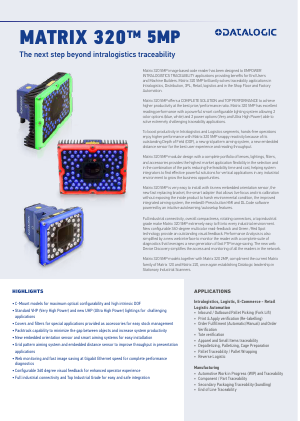 O Matrix 120™ é o menor gerador de imagens 2D industrial ultracompacto do mercado, que se encaixa em qualquer espaço de integração e incorpora conectividade Ethernet. Esse é o mais novo membro de nível básico da família Matrix, a melhor da categoria, de geradores de imagens 2D industriais de alto desempenho.