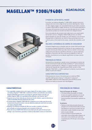 O Magellan & trade; 9300i scanner e scanner / scale: uma nova classe de leitores de código de barras de alto desempenho. Com tecnologia imager em todos os planos, os leitores 9300i lêem códigos de barras 1D e 2D perfeitamente sem exigir orientação do item pelo caixa. Com uma altura padrão e grandes janelas horizontais e verticais, o Magellan 9300i permite o posicionamento ideal para o ponto de venda ou self-checkout, terminais de pagamento e impressoras, mantendo o conforto ergonômico tanto para caixas sentados e de pé.