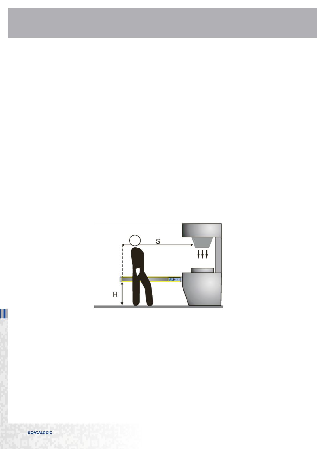 If the safety light curtain must be mounted in a horizontal position (Fig. 4), the distance between the dangerous area