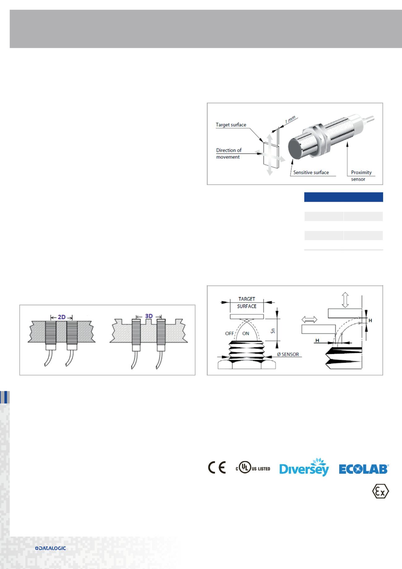 between two adjacent proximity switches ≥ 3D. The metal body leaves